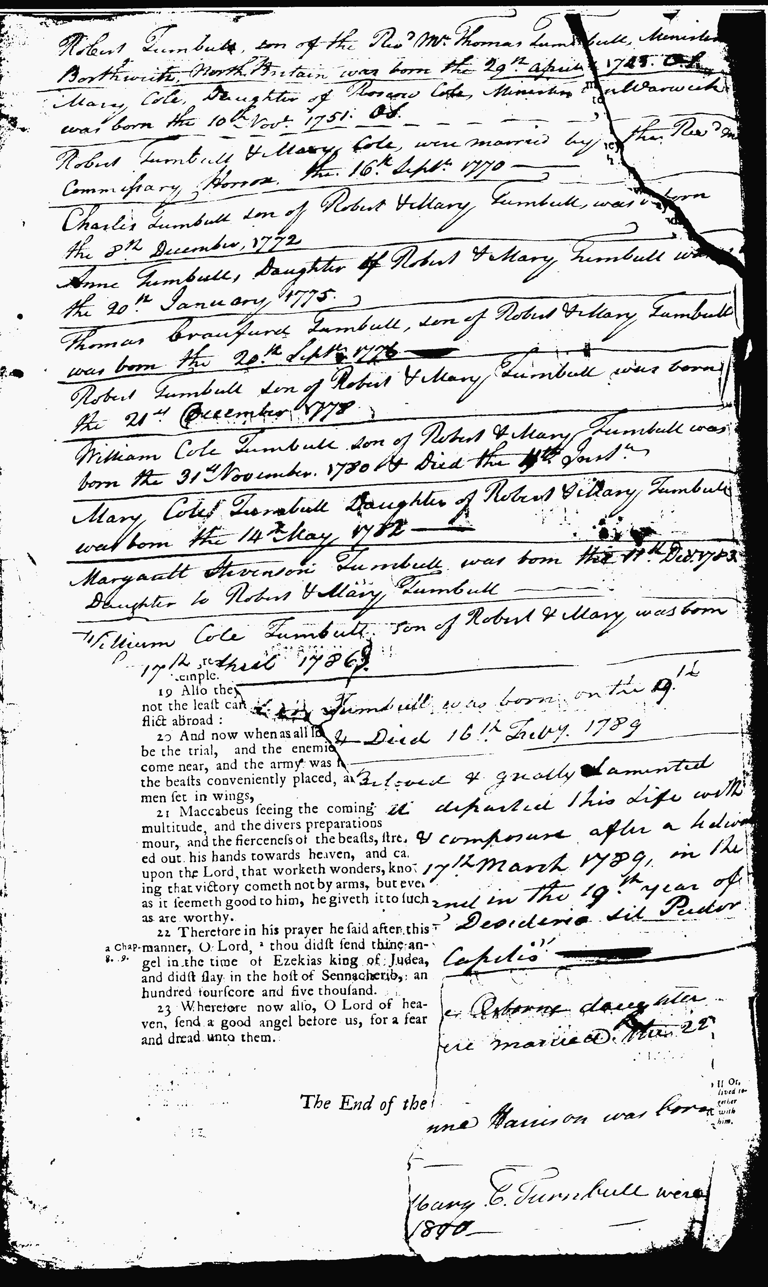 Marriage | He married Mary Cole on 16 September 1770 in Williamsburg, VA. Robert Turnbull was, age 28, Mary Cole was, age 18. |