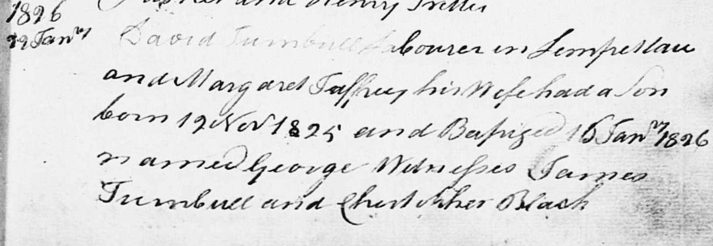 | Residence | David Turnbull lived in Sprouston, Roxburgh, Scotland, in 1797.1 |