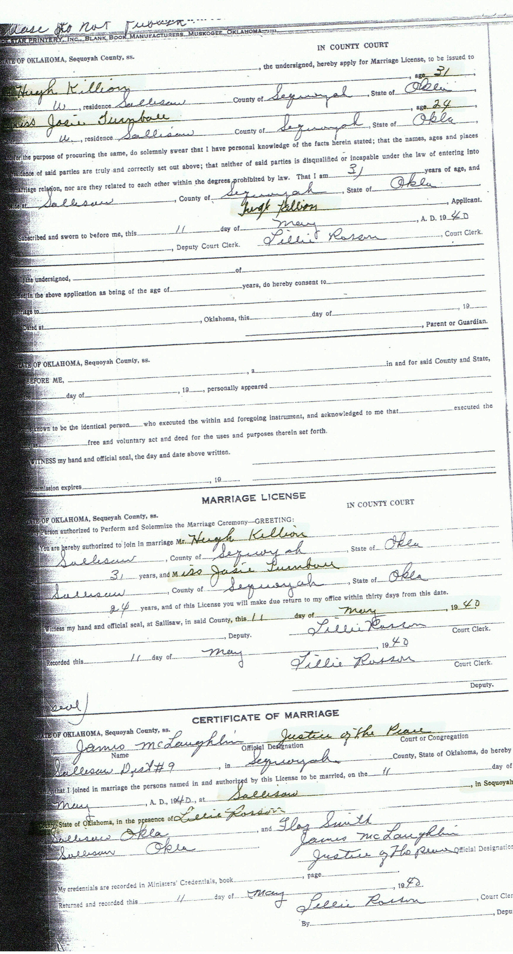 - [S2735] Ancestry.com, 1940 United States Federal Census, Year: 1940; Census Place: Stilwell, Adair, Oklahoma; Roll: m-t0627-03274; Page: 2A; Enumeration District: 1-7, United States of America, Bureau of the Census. Sixteenth Census of the United States, 1940. Washington, D.C.: National Archives and Records Administration, 1940. T627, 4,643 rolls.
