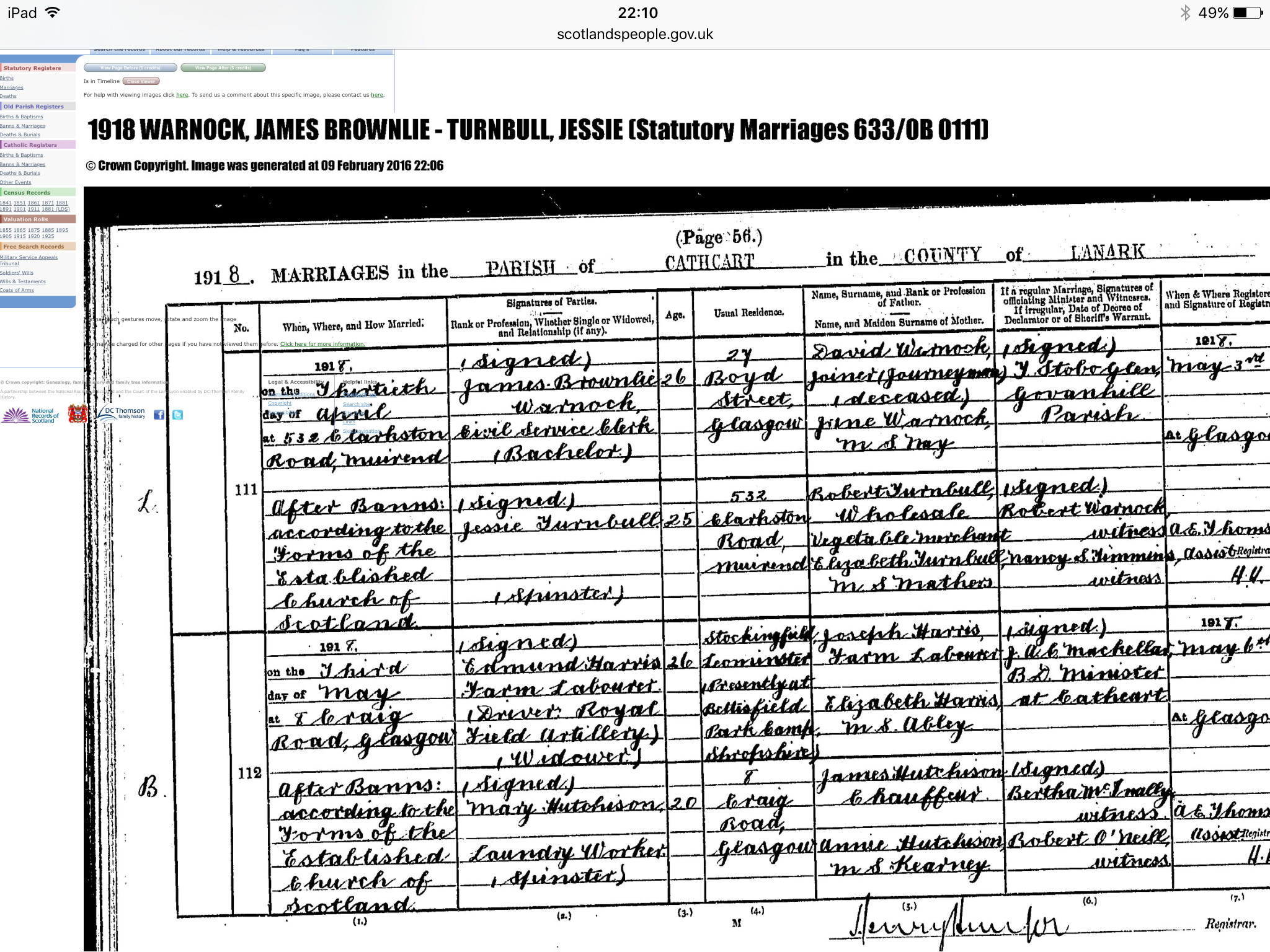 Marriage | He married Euphemia Turnbull on 9 February 1860 in Govan, Lanark, Scotland. Theodore Brooke Jones was, age ~32, Euphemia Turnbull was, age 28.1 |