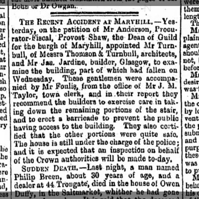 Residence | Allen T Turnbull lived Relation to Head of House: Son in Kirkintilloch, Kirkintilloch, Dumbartonshire, Scotland, in 1901.1 |