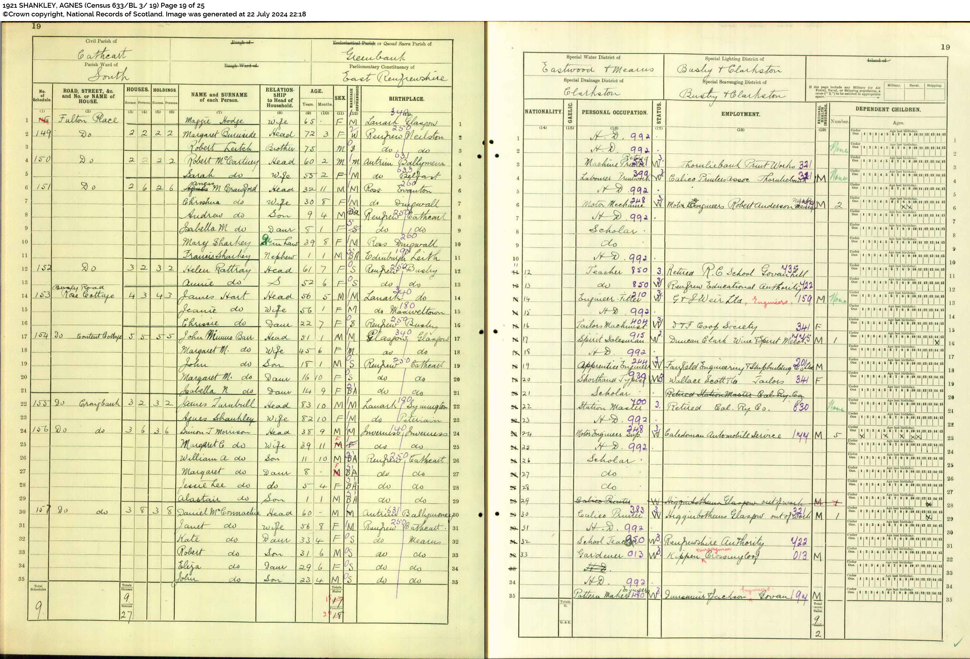 - [S29874] Ancestry.com, 1901 Scotland Census, Parish: Glasgow Govan; ED: 89; Page: 11; Line: 5; Roll: CSSCT1901_312