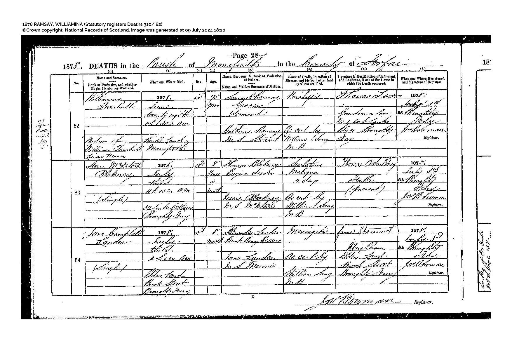 Death | She died on 28 June 1878 at age ~76 in Monifieth, Angus, Scotland.6,7 |