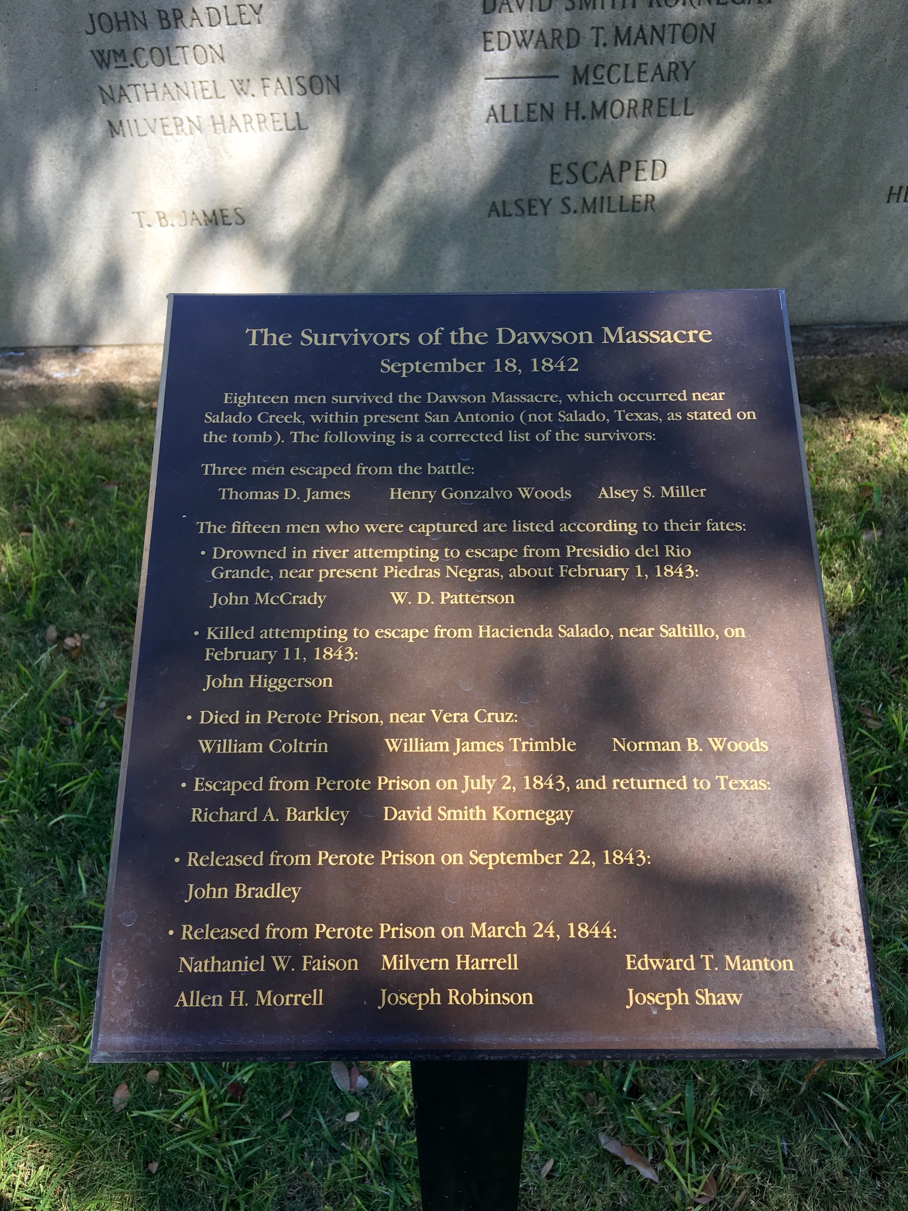 Monument Hill State Park, LaGrange, TX. memorial to men of Dawson and Mier Expeditions and tomb of those whose bodies were recov