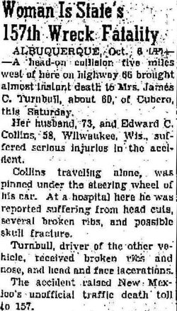 | Death | She died on 3 January 1945 at age ~41 in Albuquerque, Bernalillo, New Mexico, USA.1 |