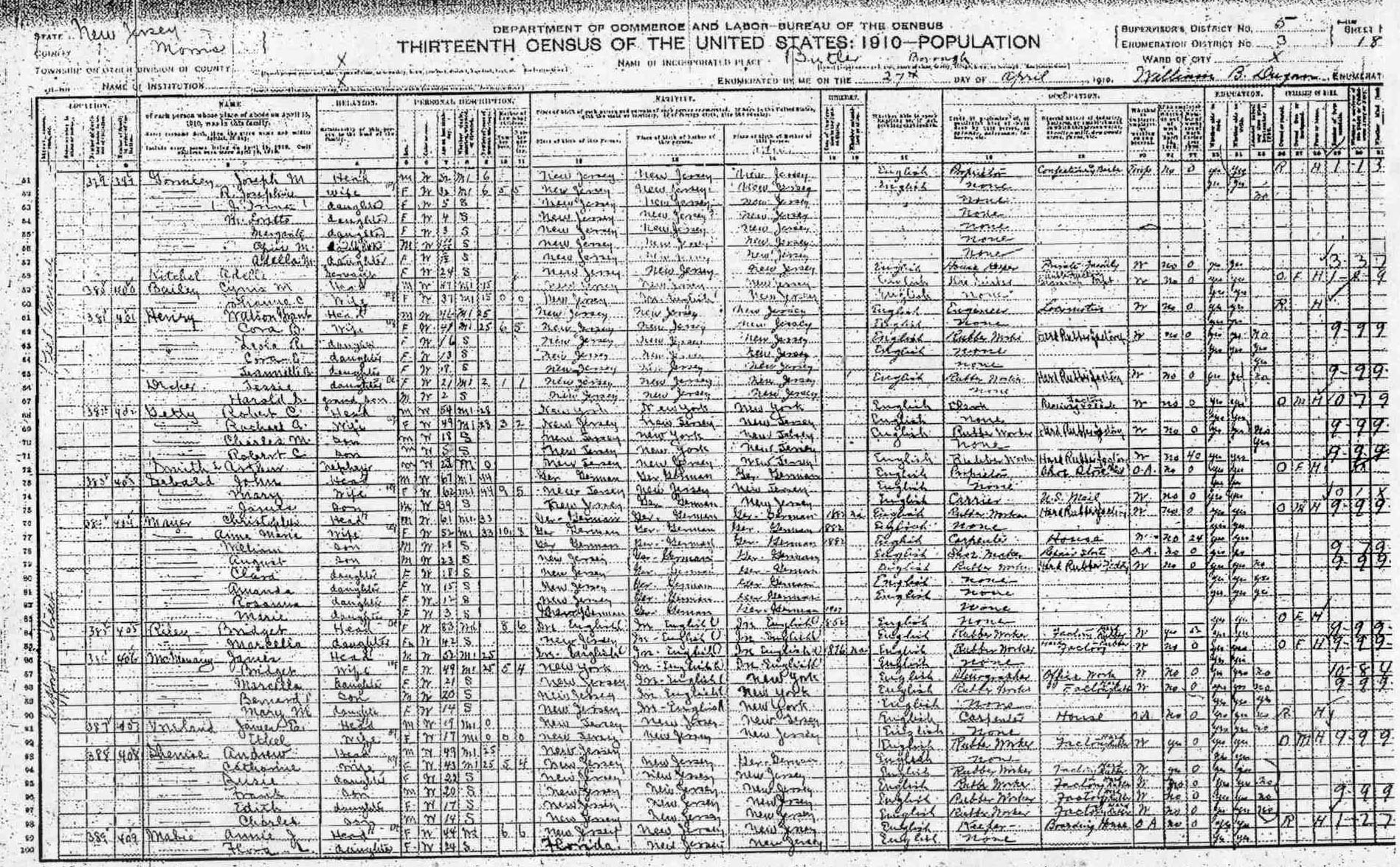 1910 Census, New Jersey