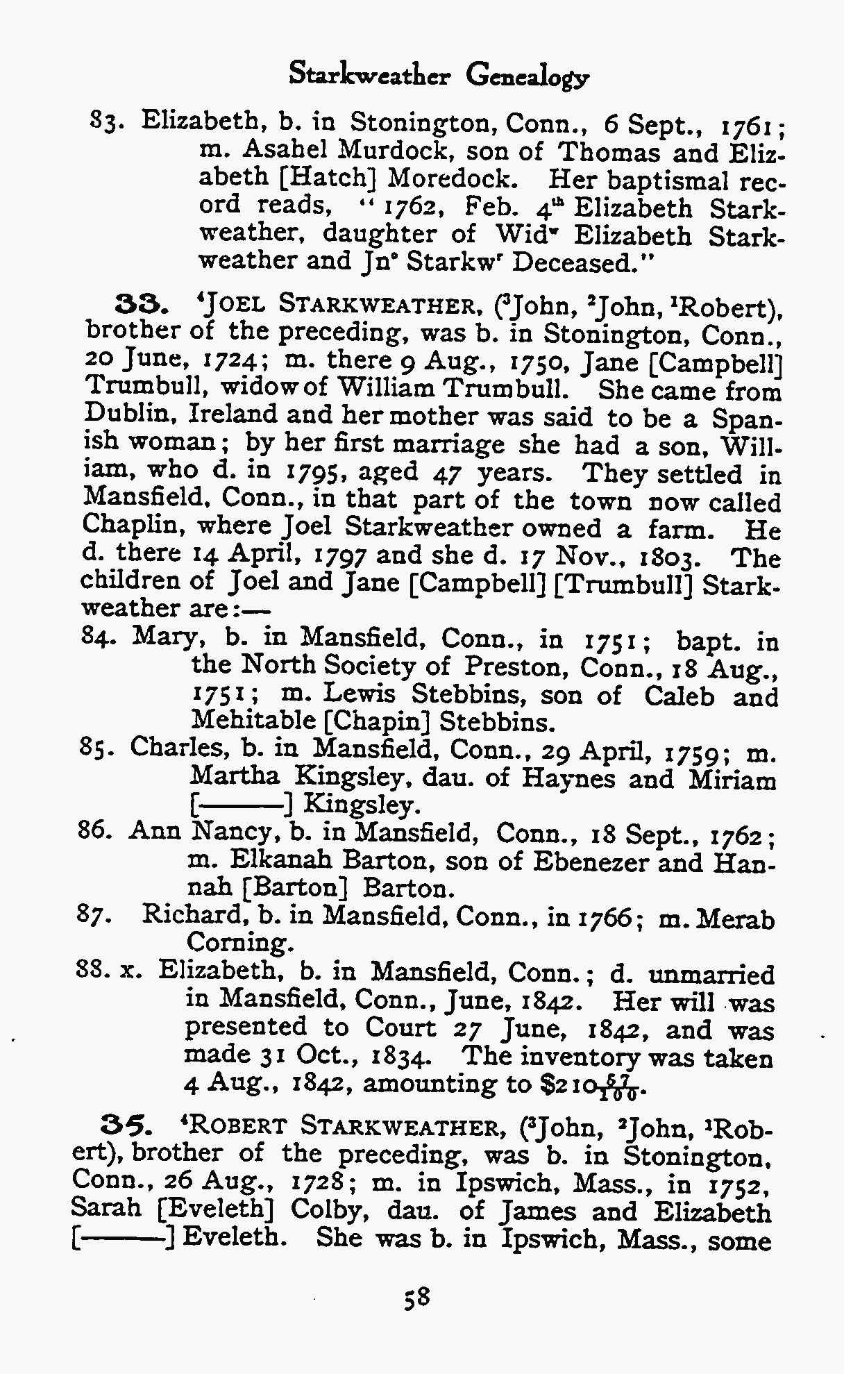 A brief genealogical history of Robert Starkweather of Roxbury and Ipswich, Massachusetts