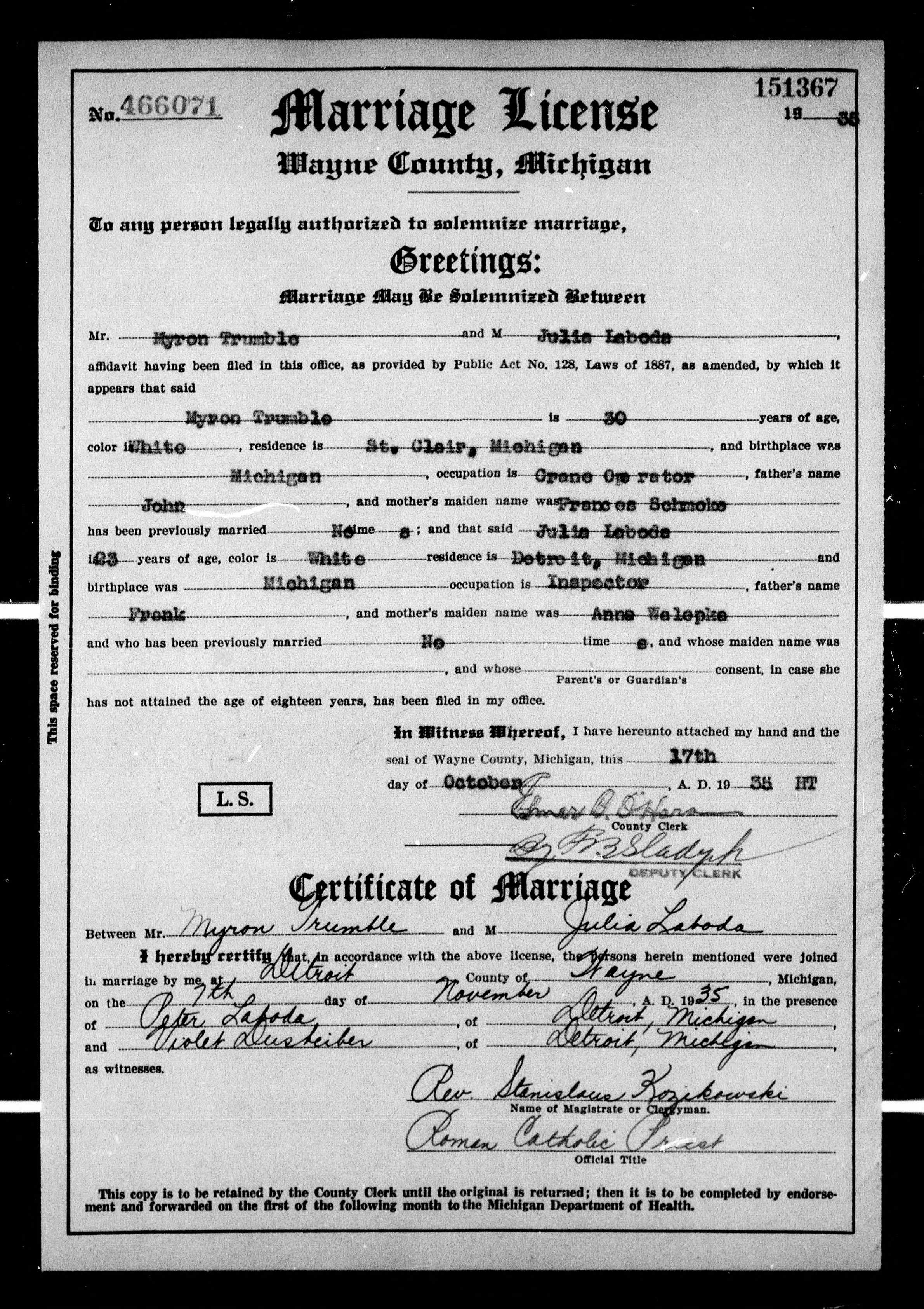 Michigan, Marriage Records, 1867-1952