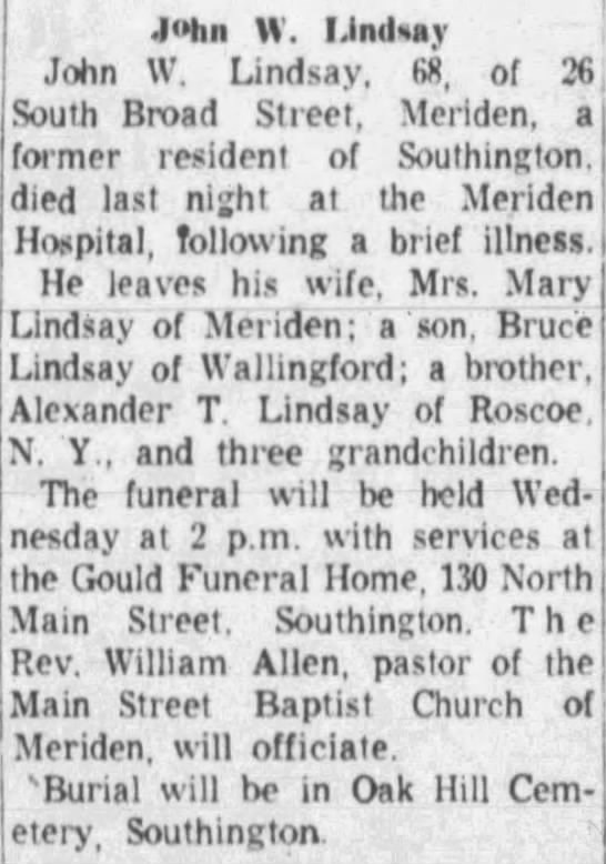 John Wallace Lindsay - Obituary